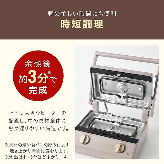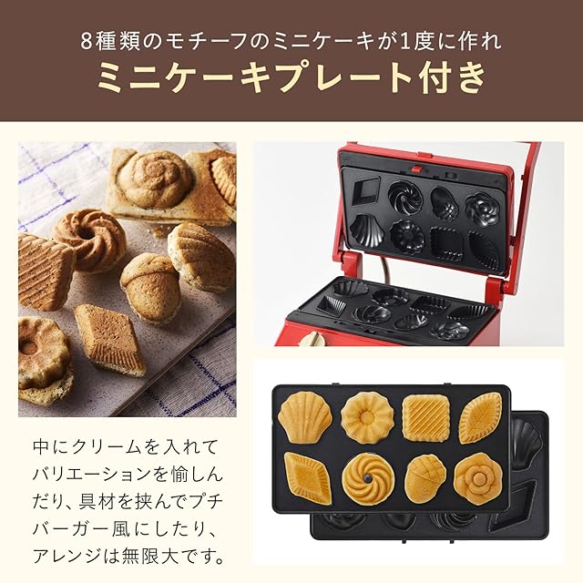 [素材]・グリルサンドメーカー:フェノール樹脂/スチール/アルミニウム合金、プレート:アルミニウム合金( 内面ふっ素樹脂塗膜加工) ・ミニケーキプレート:アルミニウム合金(内面ふっ素樹脂塗膜加工)