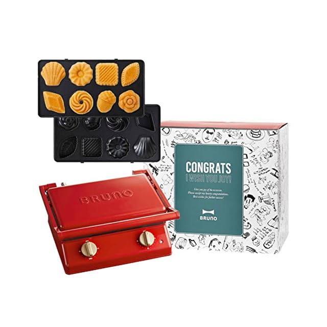 BRUNO ブルーノ グリルサンドメーカー ダブル ミニケーキ タイマー付き 食パン 6枚 お祝い 新生活 ギフト <おめでとう スリーブ> セット レッド BOE084-RD BOE084-CAKE 1703393