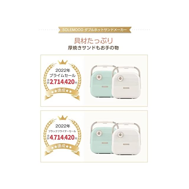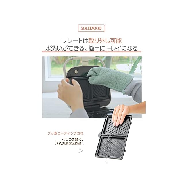【食パン耳まで美味しく・話題の萌え断】パンの耳が苦手で、わざわざ切り落としているでしょう?一度、「SOLEMOODホットサンドメーカー」で作ったホットサンドをお試しください! しっかりとプレスし、耳の部分もこんがりカリっと焼き上げるので、きっとあなたも食パンの耳が好きになります。最大5cmの厚さの、パンの耳までサクサクに焼き上げた美味しいい厚焼きサンドが作れます。(調理する食材の厚さは5cmを超えないようにご注意ください)