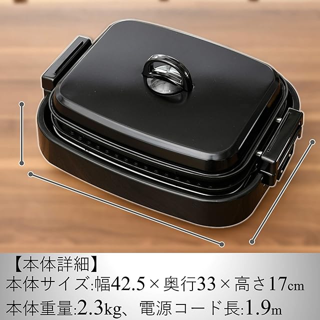 【仕様】本体サイズ:幅42.5×奥行33×高さ17cm、本体重量(ふた含む):2.4kg(平面プレート時)/2.5kg(波型プレート時)