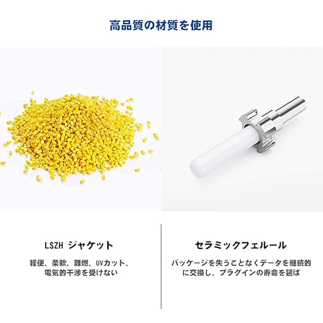 ★【高品質素材】 LSZH光ファイバーケーブル、挿入損失ファイバーコア、ジルコニアセラミックフェルール、光ケーブル内側にアラミド、高温耐性のあるコネクタ。
