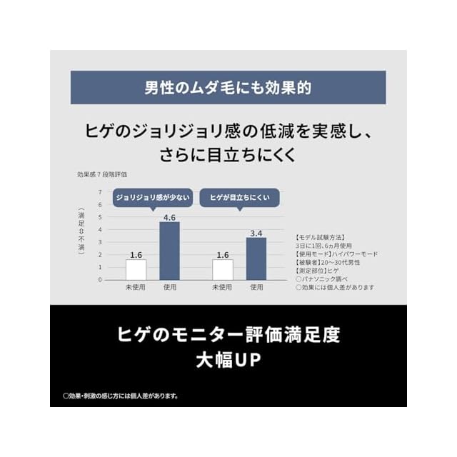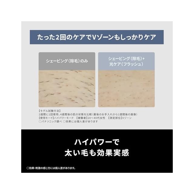 約2週間で効果実感。(※肌のなめらかさを実感。実感部位:Vゾーン、脚※)ムダ毛ケアも、美肌も1台2役。