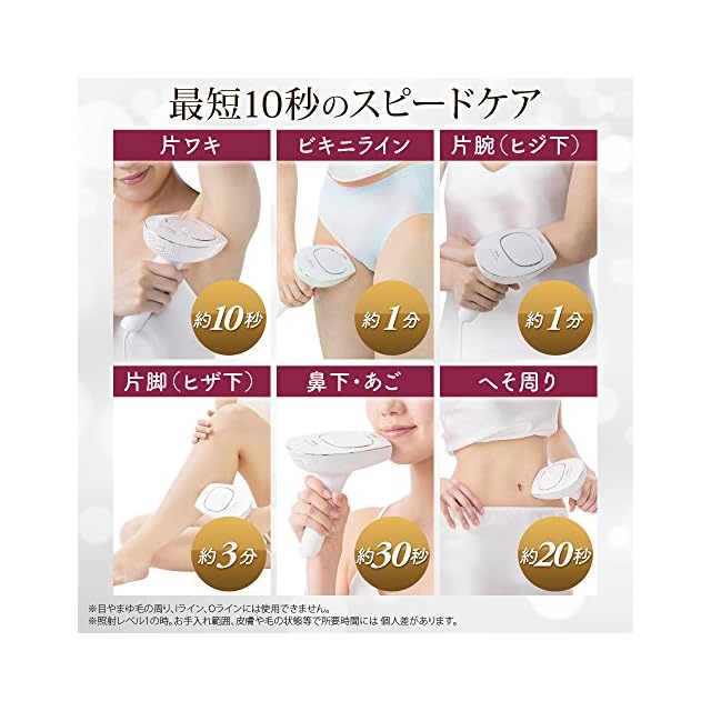 【使用可能部位】 脚、腕、ワキ、背中、指、鼻下、Vライン、胸、など全身に使用できます。 (Iライン、Oライン、顔の鼻から上は使用できません。)