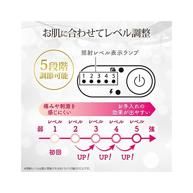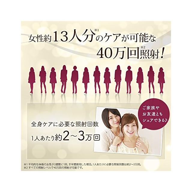 照射レベル:5段階、照射回数:40万回、電源入力:AC100-240V、50/60Hz、0.9A、コード長さ:1.8m