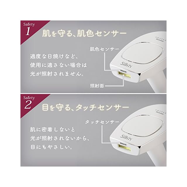 重量本体:本体220g ●照射口サイズ:3.0×0.9(2.7平方センチメートル) ●照射回数:370000回 ●出力段階:5段階 ●ACアダプターのコード長さ:約1.8m ●出力:DC12V、1.5A ●安全機能:肌色センサー、タッチセンサー