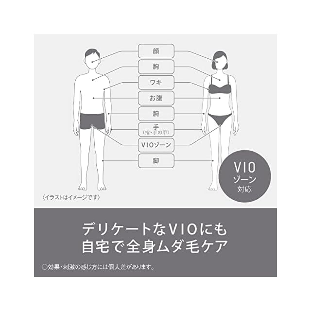 【使用可能部位】脚・腕・ワキ・手・胸・お腹・Vゾーン・Iゾーン・Oゾーン・顔(ヒゲにも対応)