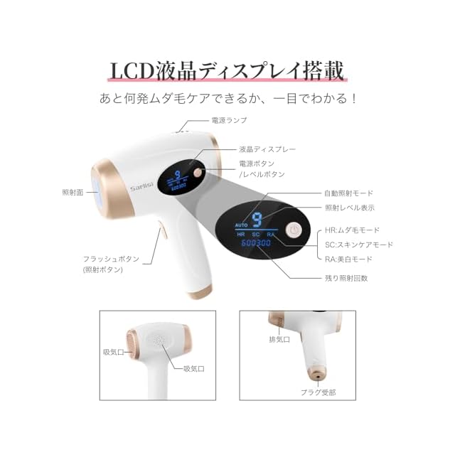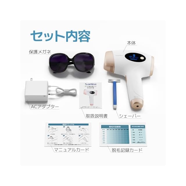 Sarlisi 脱毛器 無痛脱毛 自動照射 60万発9段階 全身適用 vio対応 家庭用 男女兼用 ipl 光脱毛器 髭 だつもうき脱毛器 メンズ サーリシ 光美容器 White Ai01