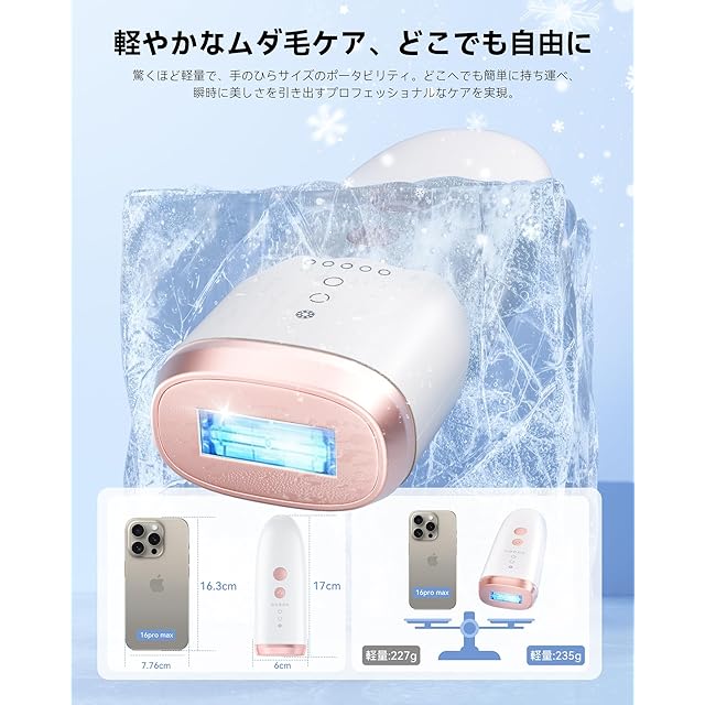 【冷感多機能脱毛器メンズ ●レディース● vio対応】素早く4週間でムダ毛ケアサロンと同じ効果が出る。従来のIPL技術より強いサファイア冷感無痛脱毛技術を採用し、脱毛部位の表皮温度は瞬時に10℃まで下がり、快適感を高め、痛みをなくなりに脱毛しやすくなる。VIO 最も敏感なところでも、無痛で脱毛をすることができる。パルスが浸透して、お肌の質を向上させ、滑らかで若々しい肌に取り戻す。持続的な脱毛、皮膚がきれいになることと改善に理想的な選択である。