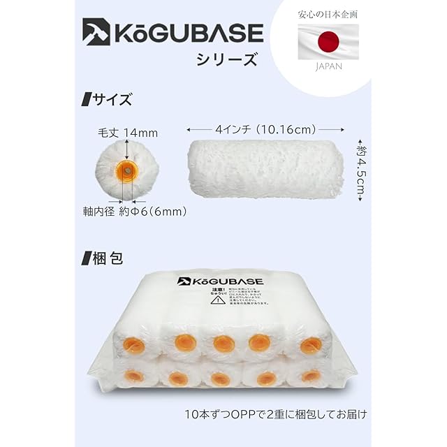 KōGU BASE 塗装ローラー マイクロファイバー スモール ペイント ペンキ 用品 4インチ 14ミリ 10本