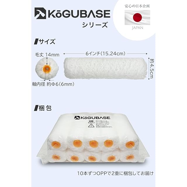 KōGU BASE 塗装ローラー マイクロファイバー スモール ペイント ペンキ 用品 6インチ 14ミリ 100本