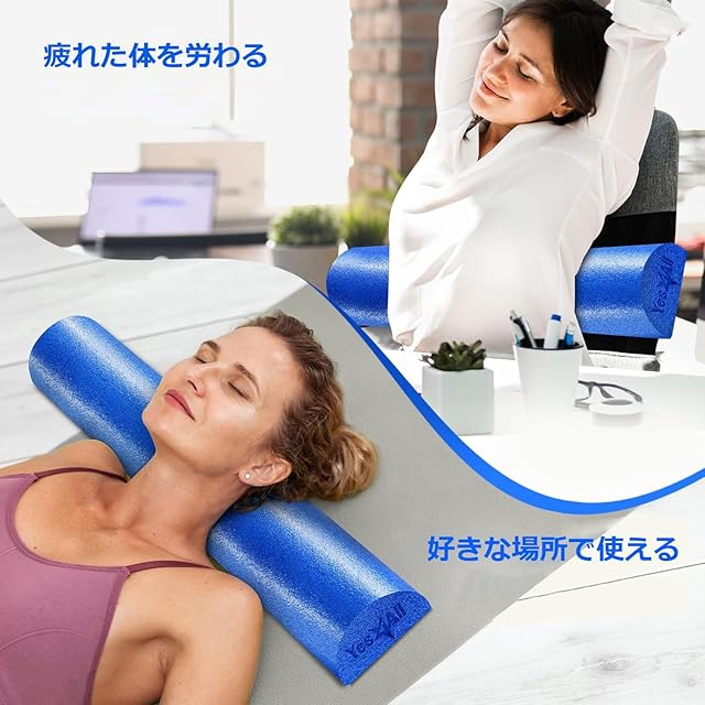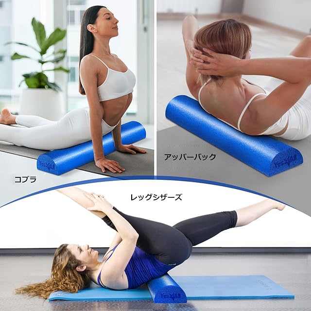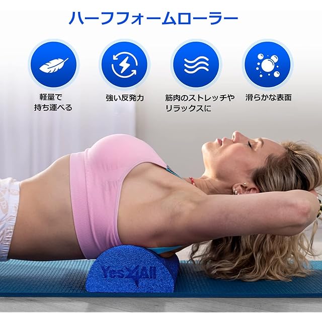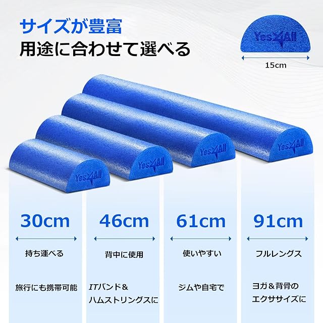 Yes4All ミディアムファームハーフフォームローラー(運動後のリラクゼーション用)、30/45/60/90cm PEフォームロール(背中のマッサージやヨガエクササイズ用)