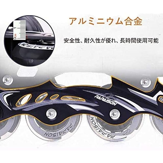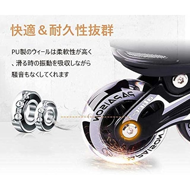 【安定性】一列四つのスケートの構造で、インラインスケートを順調に回すと同時に、スムーズな高性能スケート、静音性も優れ、摩擦抗性が少ない、順調に進みます、安全性、耐久性が優れ、長時間使用しても大丈夫です。インラインスケートの表面高強度衝突の対策を講じ、衝撃吸収材を使用し、振動を吸収し、安定感があり、楽にを楽しめます。