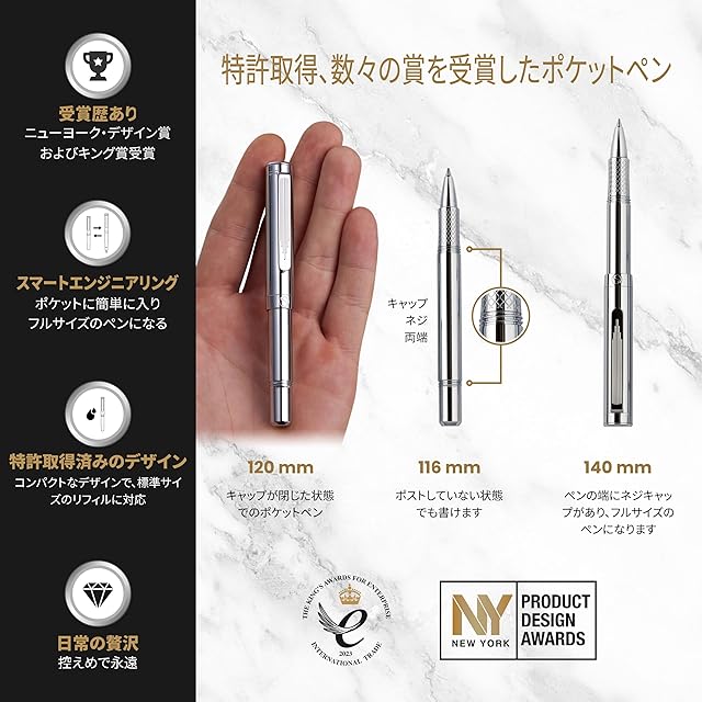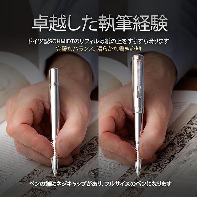 ★ 最高級で便利なポケットペン -重厚感のあるペンは高級感があります。キャップの両端をしっかりとネジ止めできるよう、精密に設計されています。キャップを閉じた状態では、ポケットにすっぽり入る短いペンです。キャップをした状態では、手の中に美しく収まる、完璧なバランスのフルサイズのペンです。