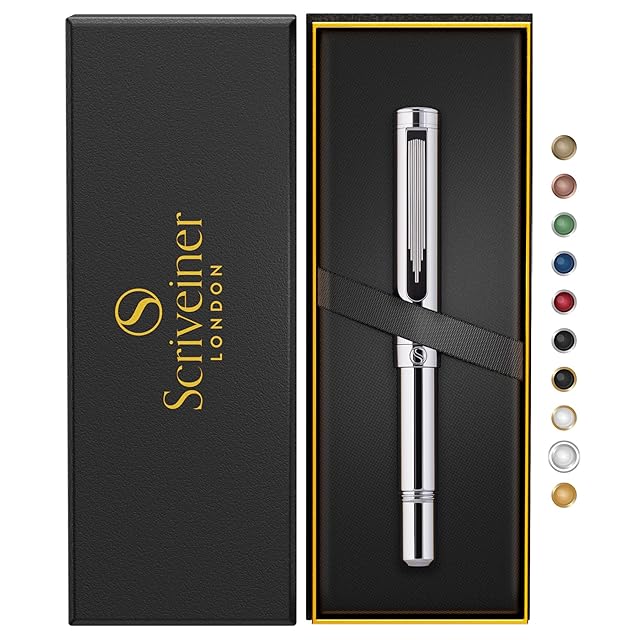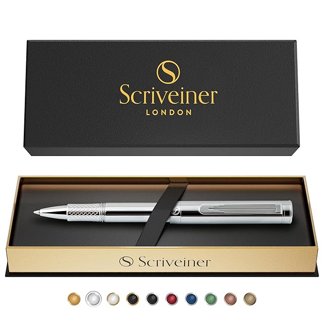 Scriveiner シルバー クローム ボールペン EDC 高級 ペン 華やか 重厚感 ポケット クローム仕上げ 快適な書き心地 ペン 男性 女性への最高の プレゼント ドイツ シュミット リフィル 素敵な オフィス デザイナー pen