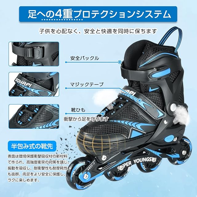 SOHAPI インラインスケート インラインシューズ ローラースケート 大人 子供用 ジュニア ローラー ローラーブレード 女の子 男の子 初心者向け 耐久 通気性 安全 静音 全ウィルが光る 4サイズ調整可能 バッグ付き(S)