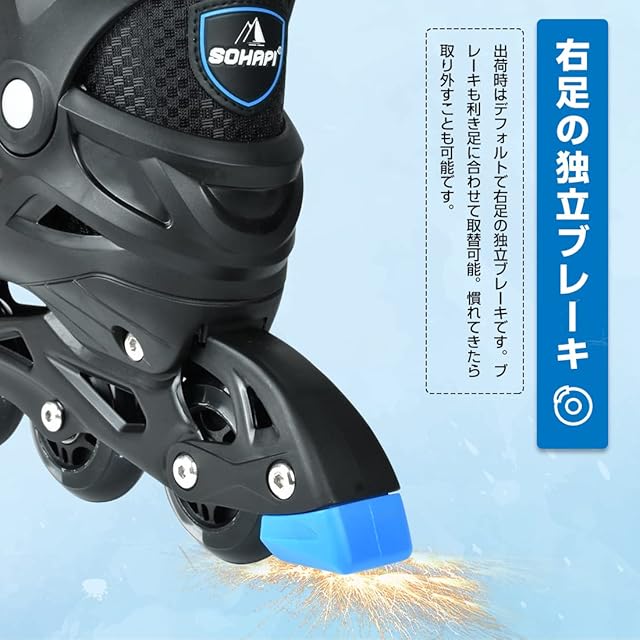 【利用者への三重プロテクション&全発光ホイール&右足ブレーキ】三重プロテクションシステム、標準的な安全バックル&マジックテープ&靴ひもがあり、厚みのあるクッションが痛い靴擦れや衝撃から足首を守り、安全性と快適さを保ちます。充電不要のホイールが回るとキラキラと光る★滑るときにピカピカと光ってカッコイイ!8つの発光ホイールのデザインです。運動の習慣に合わせて、左足は体重を支える、右足の独立ブレーキ、使い易くて安全です。