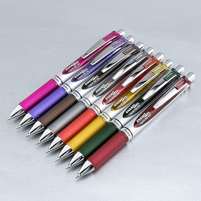 ぺんてる ボールペン ゲルインキ エナージェル ノック式限定 0.7mm シルバー軸 BL77-20 20色