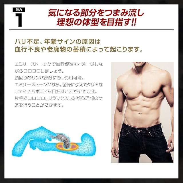 【雑誌・テレビ等メディア掲載多数!】エミリーストーン M for Menでフェイス&ボディーを引き締める!!片手で簡単ケア!!つまむ!揉む!流す!