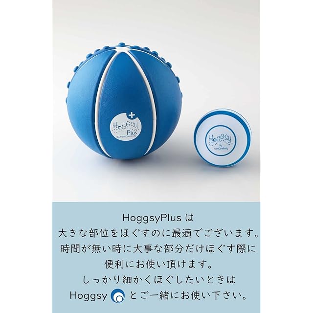 美ボディメソッド 『YumiCoreBody(ユミコアボディ)』 その大人気スタジオの代表をつとめ、”くびれ母ちゃん”の愛称で知られる村田友美子が開発した人気商品筋膜リリースボールHoggsy(ホグッシー)に引続き、 姉妹品となるHoggsyPLUS(ホグッシープラス)が遂に登場しました! 小さな筋肉はHoggsyで細かくリーリースし、腰や背中など大きな筋肉はHoggsyPLUSでほぐすなど使い分けが出来ます。 また、刺激が欲しい場合は突起部分もご使用頂けます。短い時間で大きな筋肉をざっくりとほぐしたい時に最適です。 ※ホグッシープラスは、1つ1つ手作業で製作しているため、色や形に若干のシワや違いが生じる場合がございます。ご了承の上ご購入ください。
