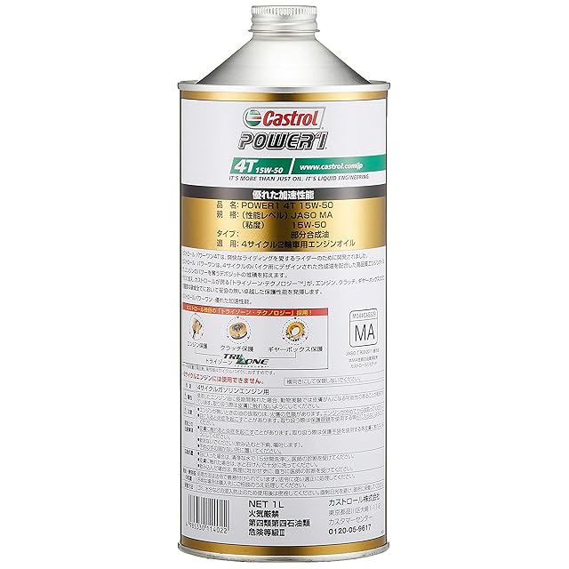 Castrol(カストロール) エンジンオイル POWER1 4T 15W-50 MA2 1L 二輪車4サイクルエンジン用 部分合成油