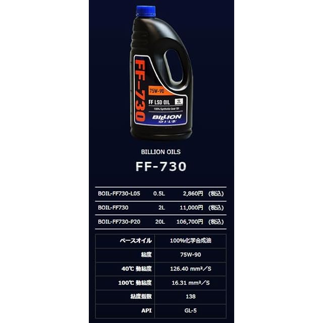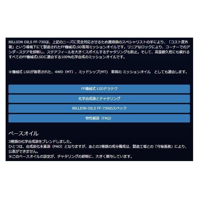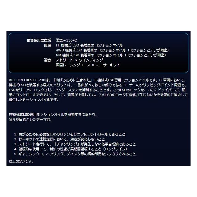 BILLION OILS ビリオンオイルズ FF/4WD 機械式LSD専用 ミッションオイル 75W-90 0.5L BOIL-FF730-L05