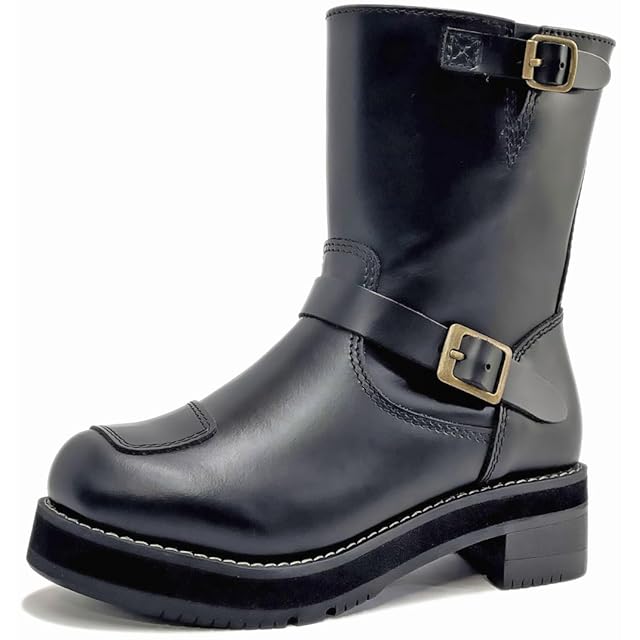 [ワイルドウィング] 厚底イーグル ブラック 25cm 本革バイクブーツ おしゃれ 街歩きにも最適 初心者にもお勧め
