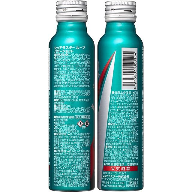 SurLuster(シュアラスター) ループ パワーショット 80ml×6本 ガソリン添加剤 バイク 4サイクル PEA PIBA 特殊潤滑剤配合 洗浄系燃料添加剤 燃費改善 振動軽減 レスポンス回復 エンジン内洗浄効果 X-35