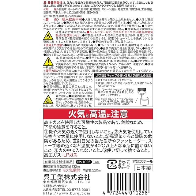 KURE(呉工業) 5-56 無香性 220ml 防錆・潤滑剤 1025