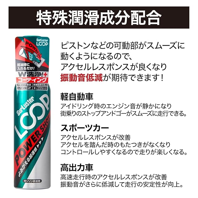 SurLuster(シュアラスター) ループ パワーショット 240ml×3本 ガソリン添加剤 ガソリン車 4サイクル PEA PIBA 特殊潤滑剤配合 洗浄系燃料添加剤 燃費改善 振動軽減 レスポンス回復 エンジン内洗浄効果 LP-16