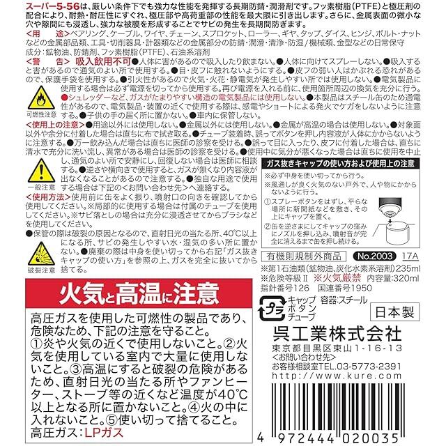 商品名:KURE(呉工業) スーパー5-56 320ml 長期防錆・潤滑剤 2003