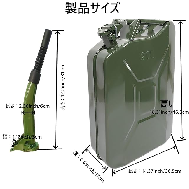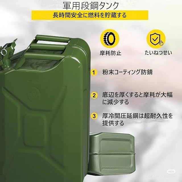 【商品詳細】:容量:20L 。ガソリン携行缶重量:3.25kg。サイズ:46.5*36.5*17cm。壁の厚さ: 0.8mm。ハンドルは持ち上げやすく、燃料を簡単に追加できます。