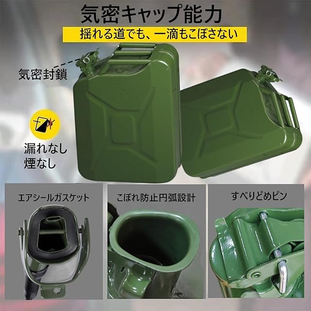 【安全排気口と油漏れ防止設計】:フューエルパイプには負圧の逆流を防ぐベントがあり、ベントにより液の移送効率がアップ!給油時の手間と時間を節約。ガソリン 携行缶頑スナップシールがタンクキャップをしっかりとロックし、こぼれや漏れを防ぎます。 ラッチはロッキングピンで固定できるため、路上で缶の開口部が誤って開かれるのを効果的に防止できます。