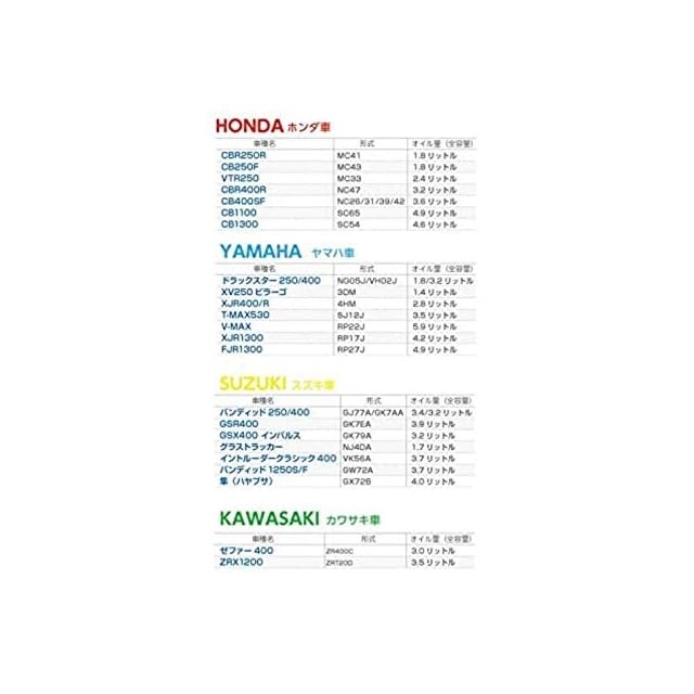容量:1L ・SAE規格:10W-40 ・油種:鉱物油 ・API規格:SL ・JASO規格:MA