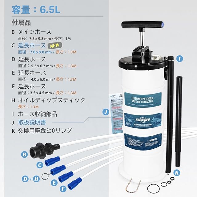 良匠 FIRSTINFO TOOLS 手動式オイルチェンジャー (6.5L)