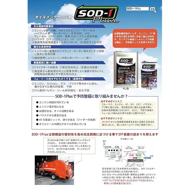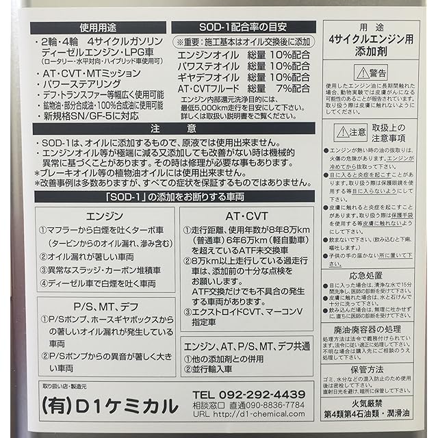 商品名:D1ケミカル エステル系オイルメンテナンス剤SOD-1Plus(エスオーディーワンプラス) 4L