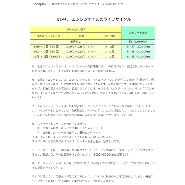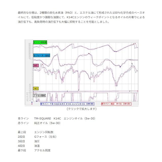 【オイル】 規格:5W-30(SAE粘度部類)100%化学合成油 粘度指数:155