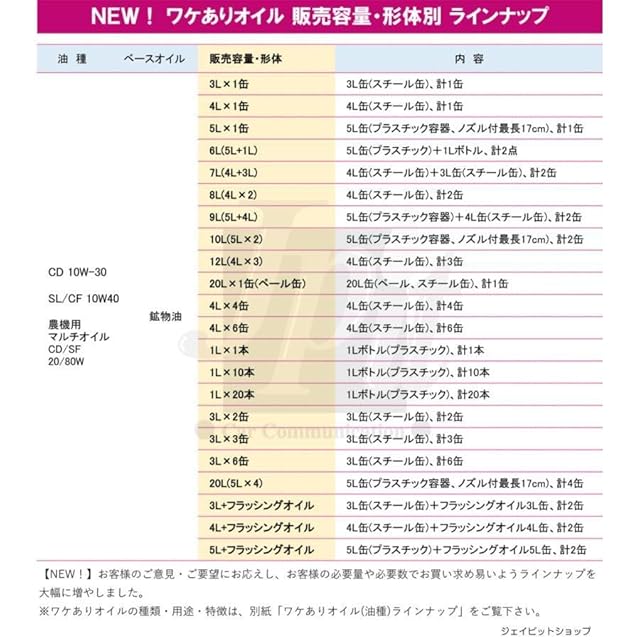 【ベースオイル】鉱物油【用途】ガソリン車・ディーゼル車・農機・建機用