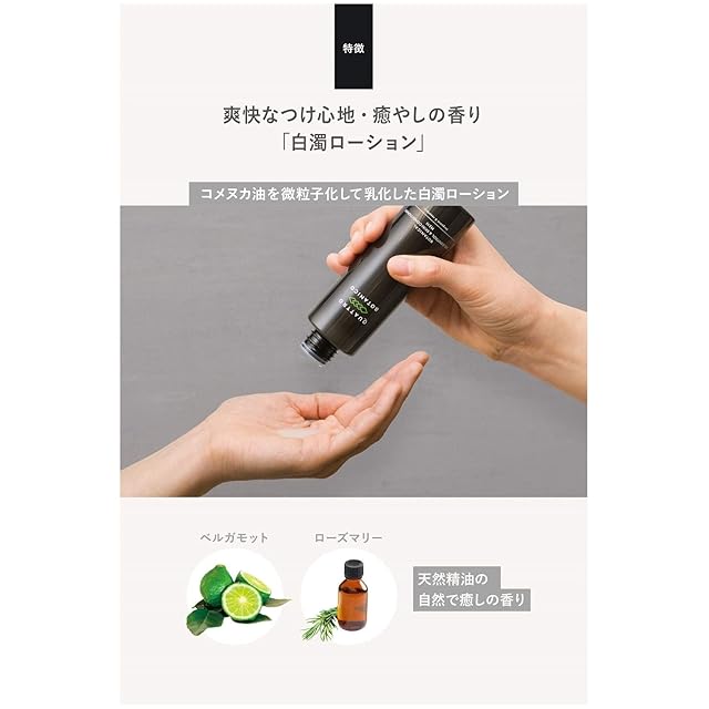 【厳選した植物エキスが肌を癒す】大人の男性の4大肌トラブルと言われる「乾燥・ハリ不足・皮脂トラブル・毛穴トラブル」に働きかける4種の植物エキスを全商品に配合。柑橘系ベルガモットにローズマリーをブレンドした自然で爽快な香りのボタニカルスキンケア。