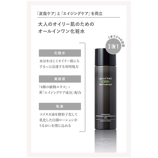 クワトロボタニコ (メンズ オールインワン ローション & UV) ボタニカル オイルコントロール 化粧水 150ml & 日焼け止め 50g セット 男性 化粧 男性化粧品 スキンケア 日焼け後 アフターサンケア 男性用