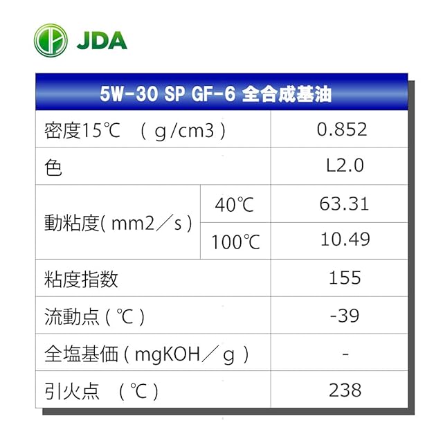 JDA エンジンオイル スーパーマルチグレードエンジンオイル 5W-30 SP/GF-6 4L 全合成基油【100%化学合成油】