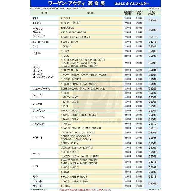 適合車種【A4 型式 8EAUKF・8KCALF】【A5 型式 8TCALF】【A6 型式 4FBDW・4FBDXS・4FBDXA・4FAUKS・4FAUKA・4FCCEA・4FCCES・4FCAJA・4FCAJS・4GCGWB・4GCGWS・4GCHVS】【A7 型式 4GCGWC】【A8 型式 4EBPKF・4HCGWF】【A8 型式 4HCREF 原動機型式 CGW】※A8 型式4HCREFの原動機型式 CRE は『OX1185D(O5018)』が適合します。