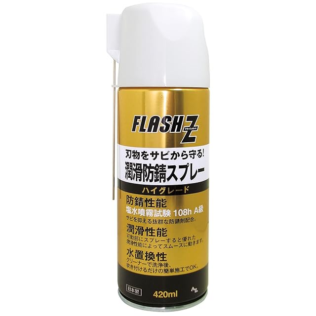 AZ(エーゼット) 潤滑防錆スプレー ハイグレード 420ml 【FLASH Z】刃物、剪定ばさみ、園芸用具のさび止め、潤滑/塩水噴霧試験108hA級/水置換 F811