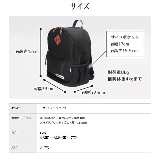 本体サイズ(約):幅33×奥行23×高さ42cm / 男女兼用
