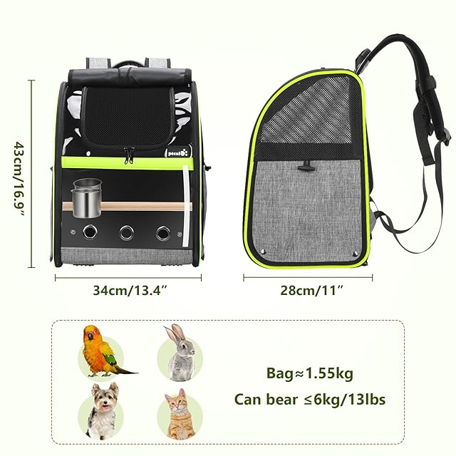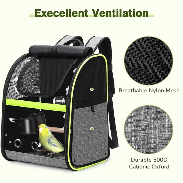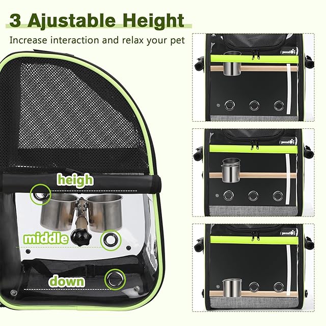 Pecute 鳥用 キャリーバッグ 鳥用 インコ キャリー リュック 鳥用 移動用 外出便利 可視窓付き 高さ調節可能な止まり木付き 餌入れ 防水パッド 軽量 折りたたみ式 散歩、旅行、避難用の鳥かご