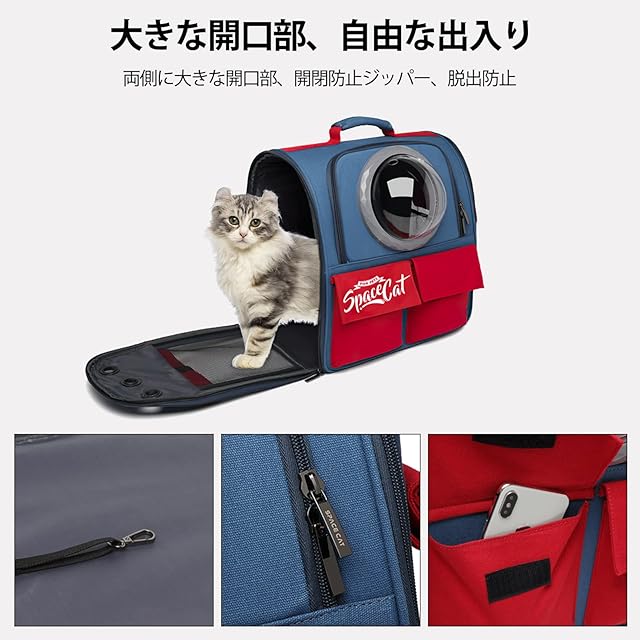 安全性:ペットのバックパックの紛失防止フックのデザインは、ペットが逃げるのを防ぐためにペットの首輪を引っ掛けることができます。バックパックのセルフロックジッパーデザインは、猫がバックパックのジッパーを開けるのを防ぎます。バックパックの前面にあるベルクロポケットのデザインにより、外出時にトラクションロープやスナックなどを入れることができます。