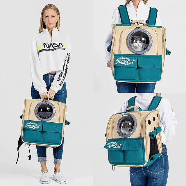 Galatée 猫のバックパック ペットバックパックバブルリュックサックキャリーキャット 宇宙カプセルペットバックパックを換気する 小型犬用ドッグトラベルバックパックキャリア 猫 リュック(カーキ)