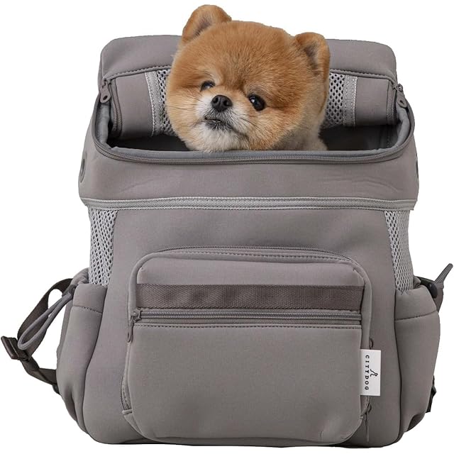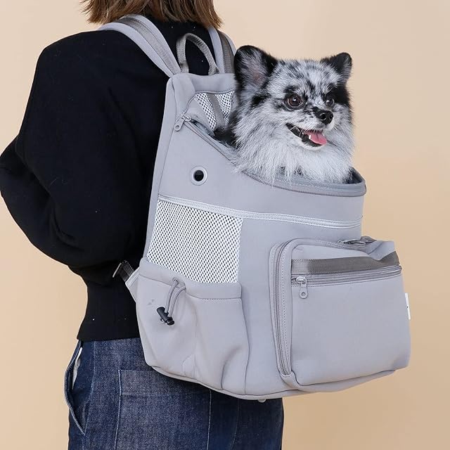 [citydog] ネオプレーンバックパックキャリー 【軽量/丸洗いOK/たっぷり収納/飛び出し防止/クッション底板】 犬用 (超小型犬/小型犬/中型犬)おしゃれ リュック 通気性 散歩 交通機関 お出かけ アウトドア (旅行 通院 避難) シティドッグ sm-grey
