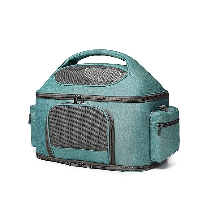CHINSUKIDA 猫 キャリー 小型犬 キャリーバッグ ペット ソフトキャリーケース 折りたたみ 猫包 大きめ 猫用キャリーオンバッグ マット付き 3WAY お出かけ用(グリーン)