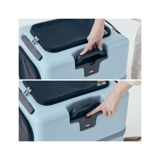 独自のストッパー機能搭載で、電車やバスなどでもしっかり安定。家の中ではケージとしても利用可能。帰省先や避難先でも使える。