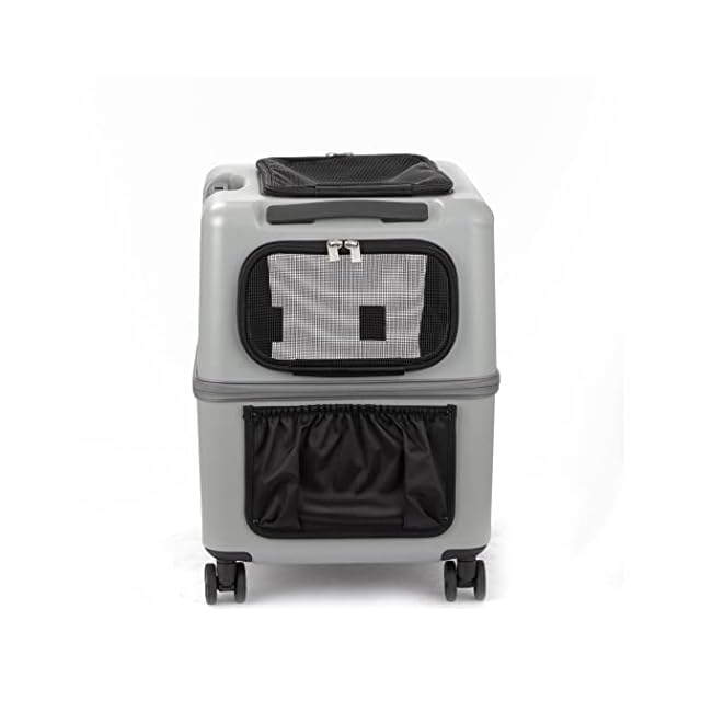 スーツケースメーカーが開発した公共交通機関にも乗れるペットキャリー。小型犬なら2匹程度、猫なら2匹程度、中型犬では1匹程度を乗せることができます